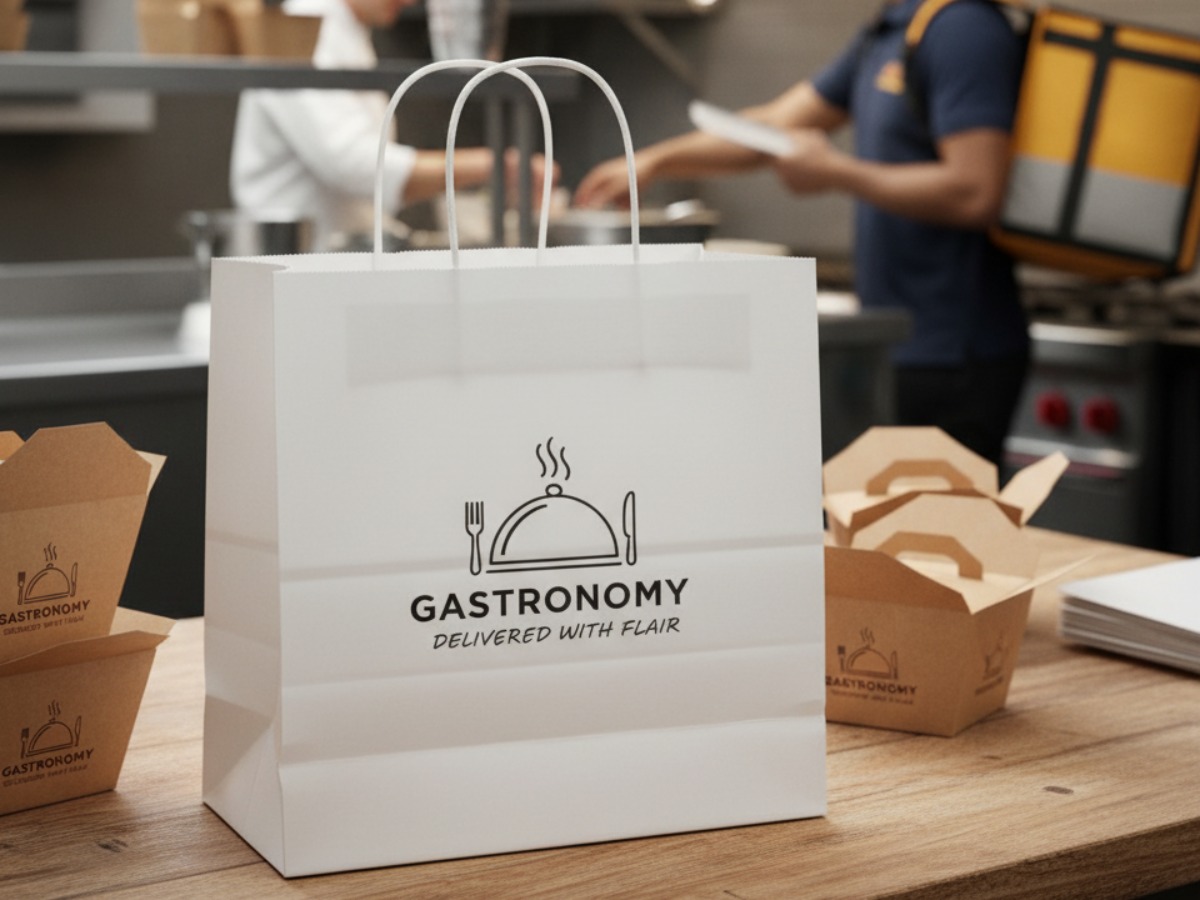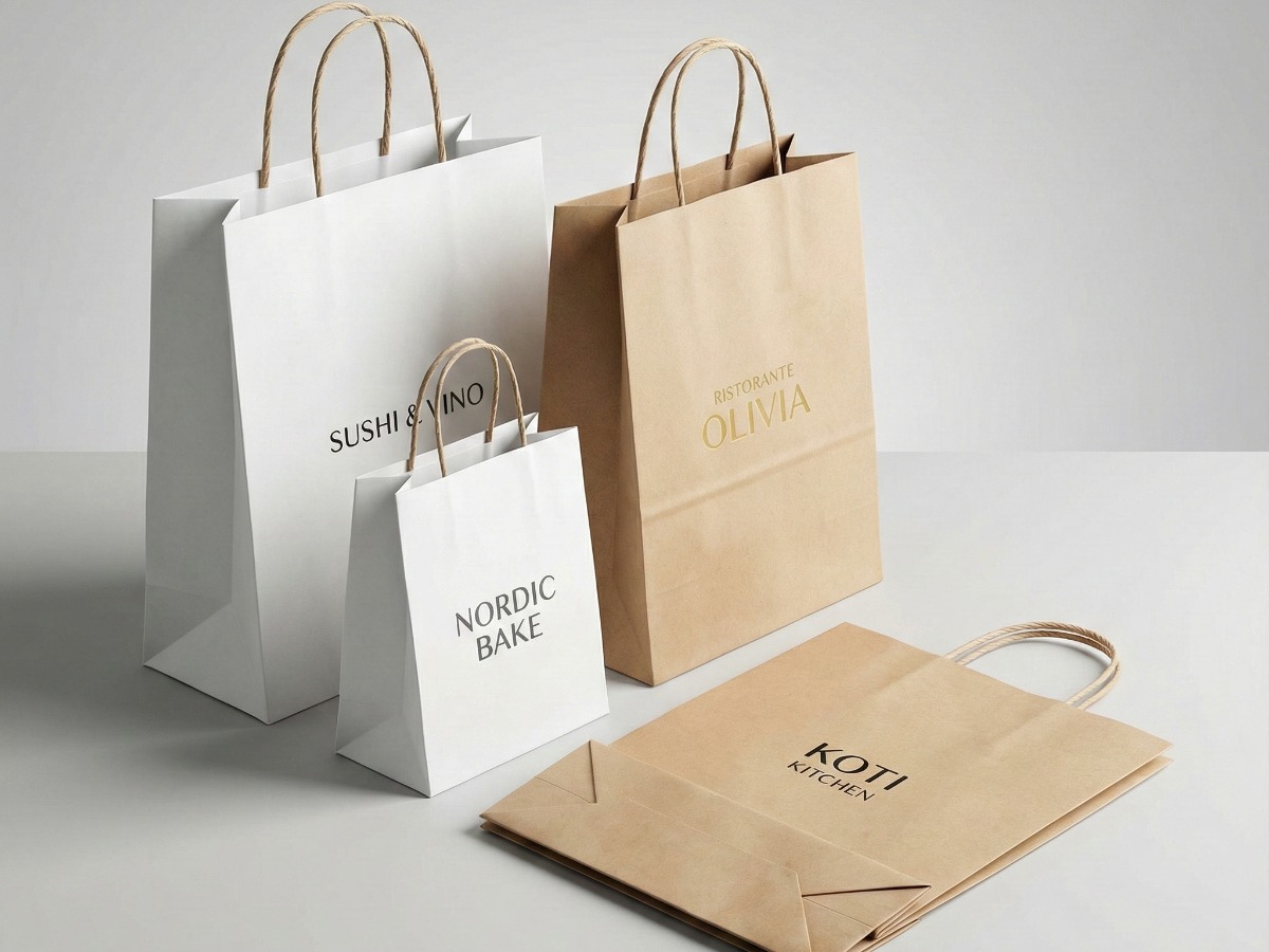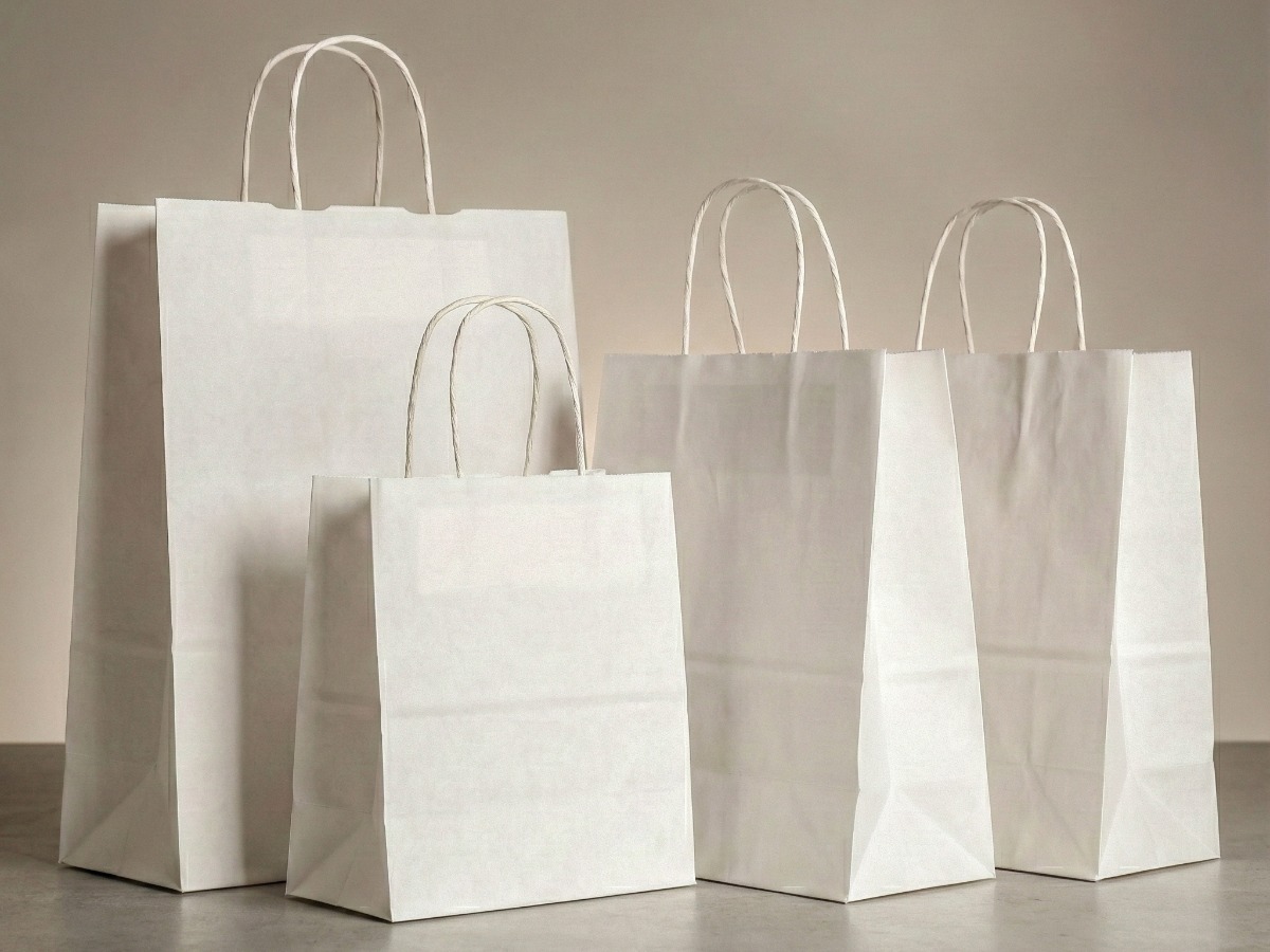 flach / Kordelgriff / Kraft / weißer Karton / Logo-Druck